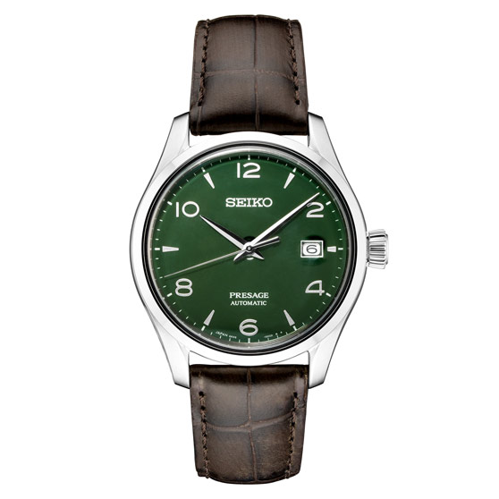 Inspired by the rich cedar green tones of a Japanese evergreen forest, this elegant limited edition timepiece expands the possibilities of fine enamel craftsmanship with a unique dial color individually created by master artisan Mitsuru Yokosawa in an exacting, multi-step process. Completing the image of a graceful tree is the deep brown of the crocodile strap.