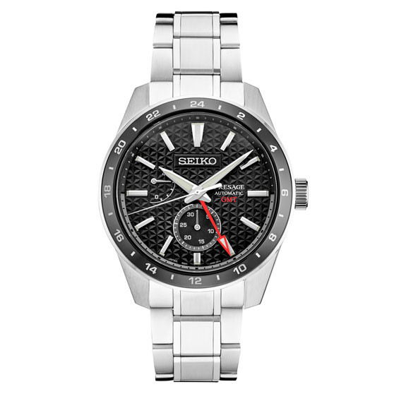 The Presage Sharp Edged Series case and bracelet incorporate flat surfaces with sharp angles that allows the watch to sparkle from every angle. The case has a super-hard coating that protects the case and bracelet from scratches but also preserves its brilliance. The dial has an Asanoha or hemp leaf pattern that has been used for a thousand years and more in Japanese fabrics and architecture. The rich texture of the dial’s geometric pattern creates an infinite variety of shades at different angles as the light moves across it. The watch is powered by the automatic GMT caliber 6R64.