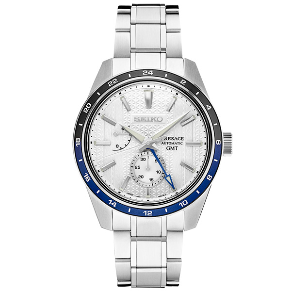 Presage Sharp-Edged Series GMT Zero Halliburton Limited Edition. Offering the finest in Japanese mechanical watchmaking, the Presage Collection blends precision technology with superior craftsmanship and design. The cool angularity of the Sharp-Edged Series, celebrating the fresh look of contemporary Japanese design, provides a perfect match for its first collaborative collection, a Limited Edition group designed with the iconic Zero Halliburton luggage brand. With clean functionality and graceful lines, the aluminum travel cases of Zero Halliburton, first established in 1938, have gained an enthusiastic worldwide following. Created with the blend of practicality and style characteristic of both brands, the new Limited Editions feature a distinctive dial pattern combining Zero Halliburton’s double-rib design and the Presage Sharp-Edged Series’ Asanoha hemp-leaf motif, a symbol of growth and prosperity dating to the Heian Period (794-1185 AD). Available only in a limited edition of 2,000, with the Zero Halliburton logo on each screw-down.
