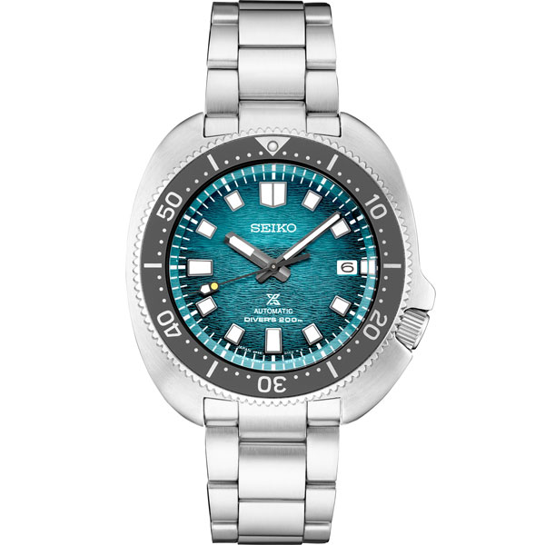 Built for the Ice Diver – 2021 U.S. Special Edition. Designed for those who treat life as the ultimate adventure, the Seiko Prospex line meets every challenge with technological excellence and style. Following last year’s designs paying tribute to the durability of Seiko watches in the coldest and iciest conditions, this new U.S. Special Edition was inspired by the landmark 1970 diver’s watch, a favorite of daring adventurer Naomi Uemura, the first man to conquer the highest mountains on five continents. Including the original’s signature built-in crown protector at 4 o’clock, this exceptional watch features a distinctively patterned dial representing the tracks Uemura forged in deep snow, in a gradated green evoking one of the many changing tones of light reflecting off glacial ice formations. Following ISO standards for scuba diving to depths of up to 200 meters, this exceptionally durable timepiece is crafted of stainless steel with super-hard coating, and features a screw down Special Edition caseback, scratch-resistant anti-reflective sapphire crystal, screwdown crown and tri-fold push-button release clasp with secure lock and extender. Framed by a gray uni-directional rotating elapsed timing bezel, the dial includes a date calendar, as well as LumiBrite hands and markers for enhanced visibility. The 24-jewel automatic movement beats at a frequency of 21,600 vibrations per hour, with a power reserve of approximately 70 hours, and offers manual winding capability. 200m Water Resistant.