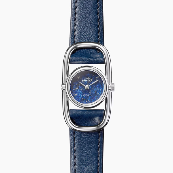 The Bike Lock watch is tribute to the wheeled works of art that gave us our wings. Gentle oval bends and straight-away lines define the minimal 20mm Bike Lock. Slender and elegant, the unique Bike Lock bars elongate the face shape and turn this timepiece into a talking point. A rich Lapois stone dial and stainless steel case are complemented by the premium leather strap.