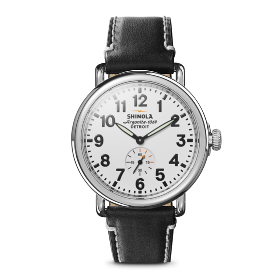 Our flagship style, the Runwell, is a simple and sophisticated watch crafted for decades of wear. This obsessively engineered watch is built to last and named accordingly. Two hands and a sub dial are driven by Shinola’s Argonite 1069 high-accuracy quartz movement. The solid stainless steel case features a classic pumpkin crown with double-domed sapphire crystal to protect the watch from scratches throughout years of wear. Go ahead, get attached.