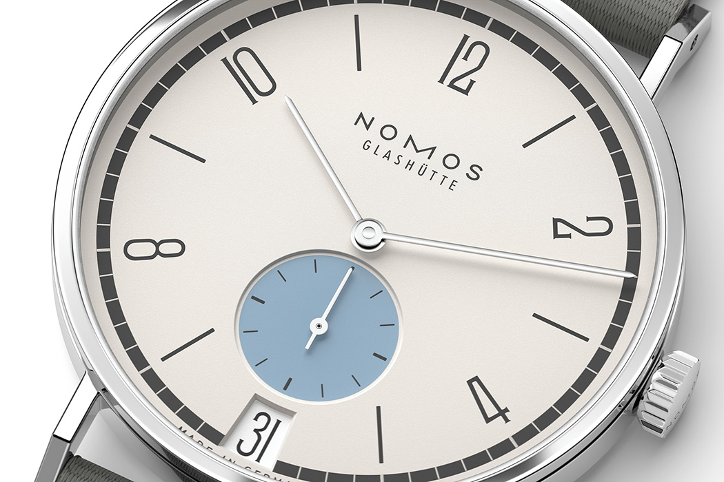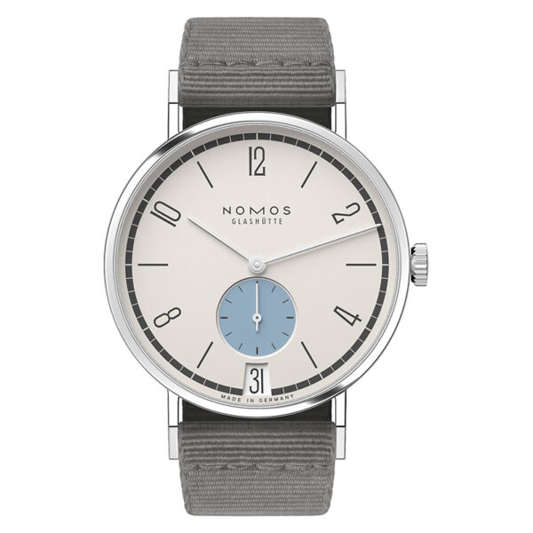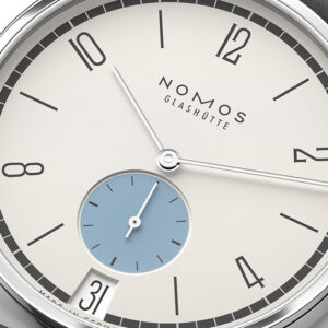 he NOMOS icon in color. Full of energy and complexity. For this special edition of the hand-wound Tangente 38 date model, numerous elements of the dial have been individually matched to the character of the watch. 31 special models for every day of the month, 31 different personalities—each limited to 175 pieces. Tangente date Schneesturm unfolds its powerful effect through the bold white color, surrounded only by a touch of black. Similar to the Super Sardine model, a watch with a vintage character has been created here, which supports and strengthens the layout of the original model precisely through the color variation.