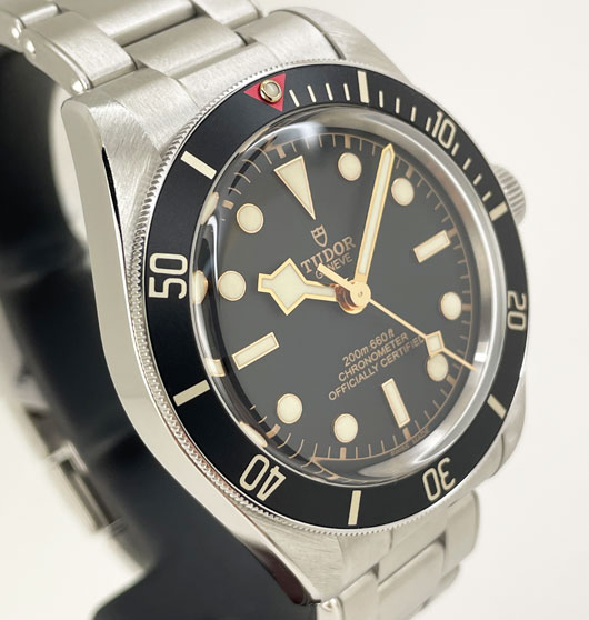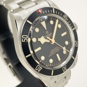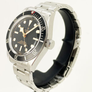 Mint condition Tudor Black Bay Fifty-Eight. In a 39mm stainless steel case with a black dial and yellow gold accents.