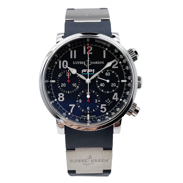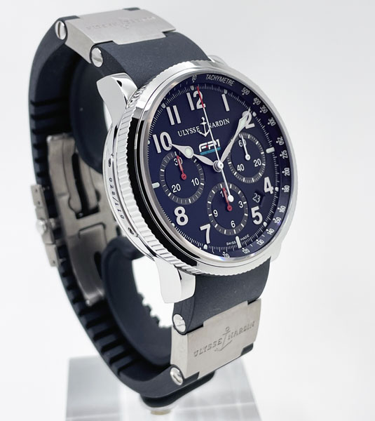 Excellent condition pre-owned Ulysse Nardin Maxi Marine FP1 limited edition with a chronograph movement and on a black rubber strap.