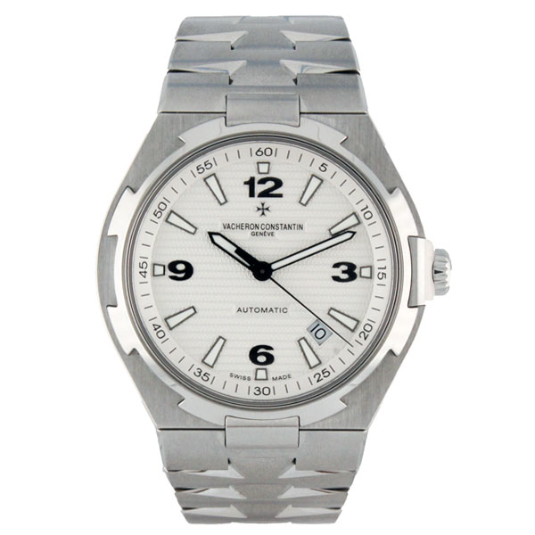 Excellent near mint condition Vacheron Constantin Overseas automatic timepiece. Featuring an automatic, self-winding movement, screwed down crown and a white textured dial.