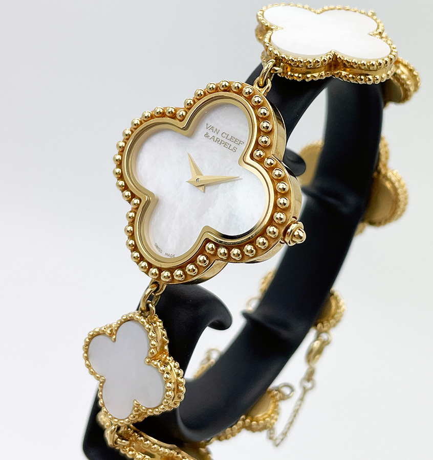 18K YG & Mother of Pearl Van Cleef & Arpels Charms with added security 18K YG chain