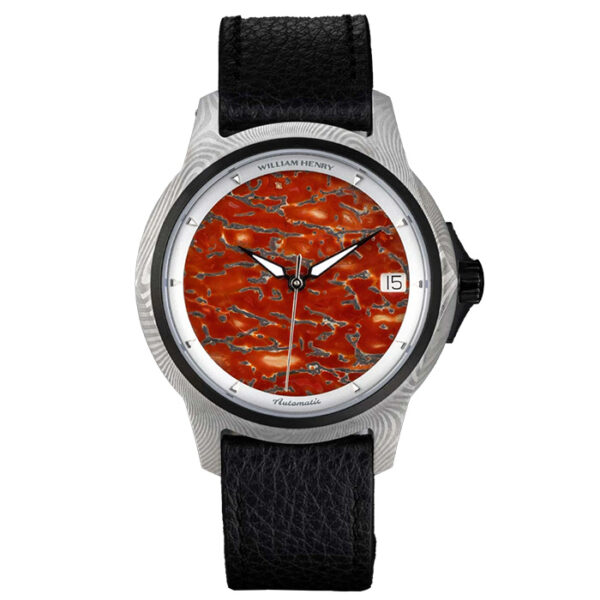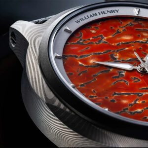 William Henry is a studio that tells stories through timeless pieces, and our first watch design is a testament to that intention. The Legacy watch collection is a perfect blend of form and function, built around the extraordinary materials that have defined us. This limited-edition model features a dial crafted from dinosaur bone; an extraordinary fossil material that ranges from 100 to 200 million years old. Our premium ‘high red’ dinosaur bone, the finest in the world, is found in the American southwest. Initially it has a similar appearance to rock, but after the painstaking process of crafting a precision dial, the beautiful hues and patterns are revealed. History on your wrist.