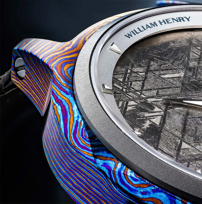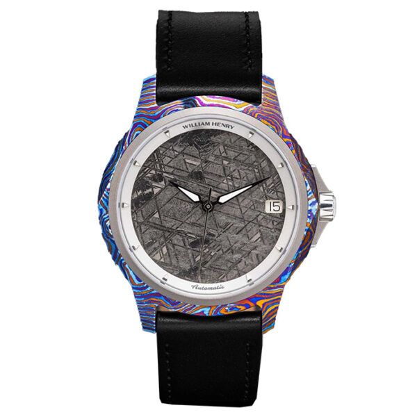 William Henry is a studio that tells stories through timeless pieces, and our first watch design is a testament to that intention. The Legacy watch collection is a perfect blend of form and function, built around the extraordinary materials that have defined us. This limited-edition model features a dial crafted from pure meteorite, a remarkable interstellar remnant dating back billions of years and discovered here on Earth. The fine crystalline pattern, in metal, is unlike anything else we’ve ever seen, and offers a window back to an earlier era in the story of our universe. The dial is housed in a forged MokuTi case, built with 90 layers of 4 alloys of aerospace grade titanium.