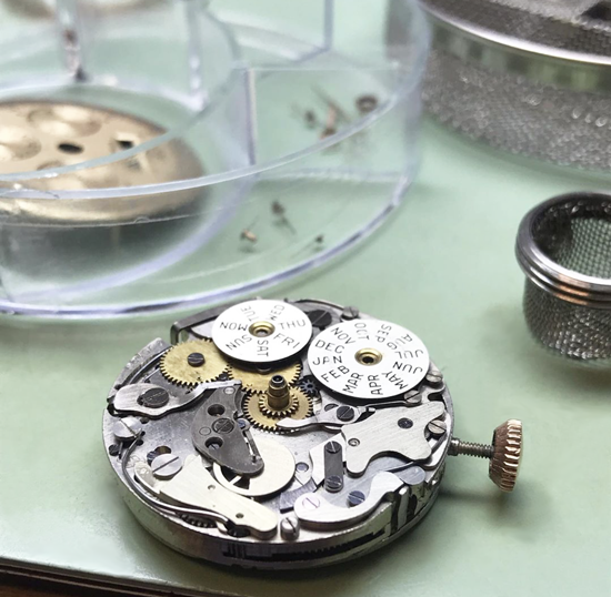 Our watch repair center is a hi-tech watch facility using the watchmaking industries latest technology. Orlando Watch Company emulates a Swiss watch repair center and follows the strict Swiss guidelines. Our dust free environment and hi-tech equipment ensures hi-quality work. All our watch repair is done on site by our team of trained watchmakers. We guarantee our complete movement overhauls with a 1 year service warranty and use original parts (due to age, some parts are discontinued and originals cannot be sourced).